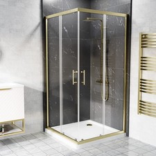 This pivot shower door enclosure with a brushed brass finish comes as a glass panel screen that can be placed as an L-shaped cubicle in the corner of your bathroom. The brushed brass finish will compliment contrasting light or dark coloured interiors and gives a modern look to the corner of your bath or shower room. The best feature is the functionality of the reversable pivot door which can be installed to open from right to left or left to right depending on what suits you! Matching taps and mirrors are also available.