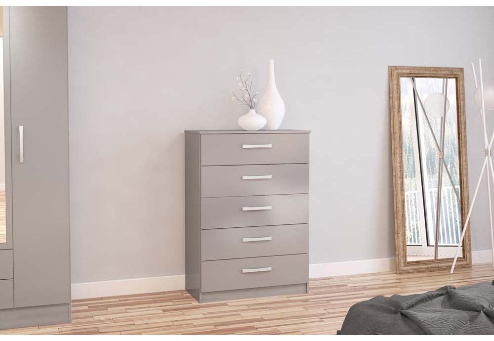 Lynx Grey Gloss Bedroom Furniture Wardrobe Chest Bedside by Birlea