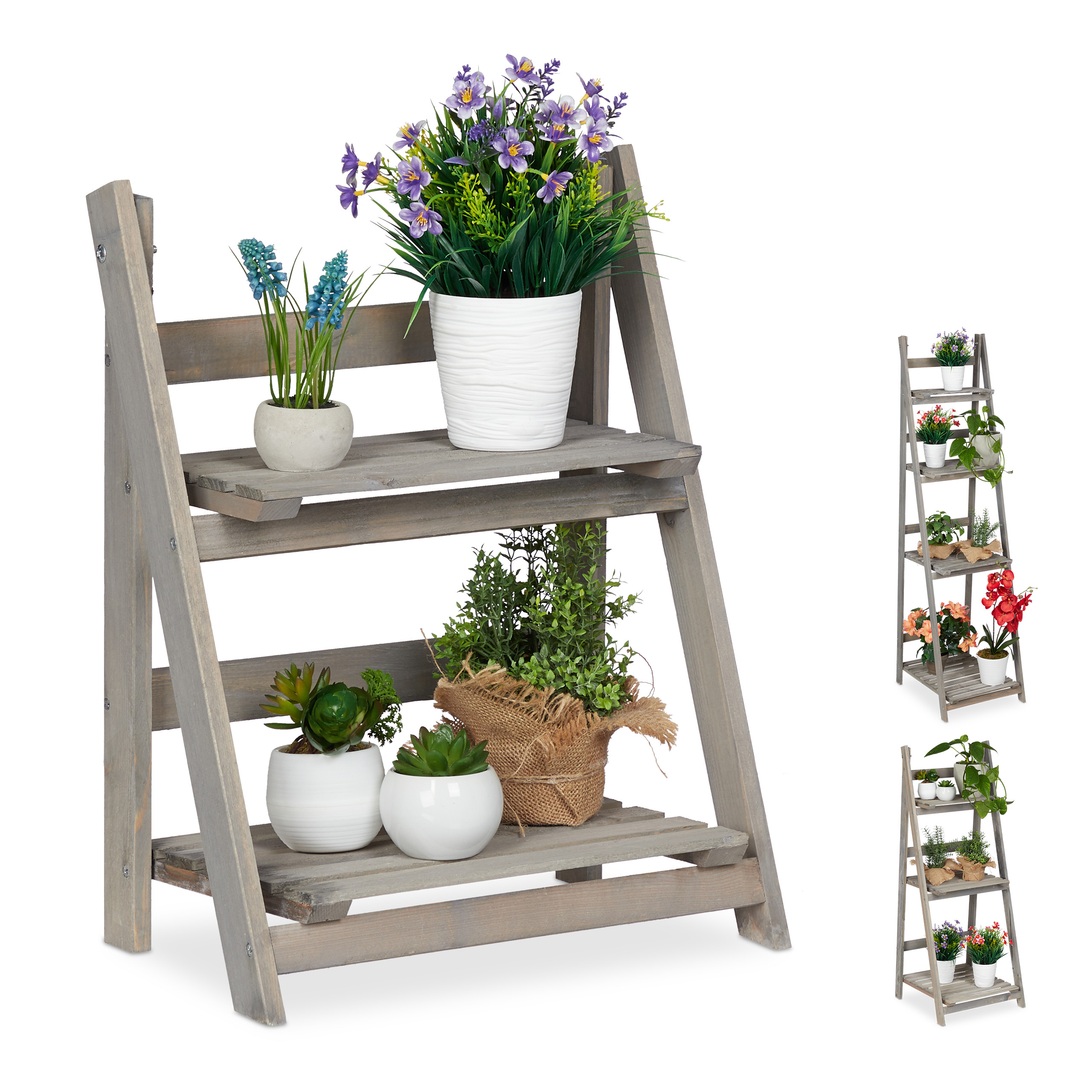This flower stand provides endless ways to present your favourite decorative plants. Colourful blossoms, herbs, flower pots and vases can be elegantly arranged on the shelves in varying sizes. Create your own little oasis in your living room, conservatory or hallway, or just put this lovely rack in a protected spot on your balcony or patio. The plant stand is entirely made of wood and fits in everywhere thanks to its subtle look. When not in use, you can easily fold it up for compact storage.