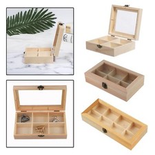 Tea Bag Boxes 4/6 Compartments Real NATURAL Wood/Bamboo Glass Lid Chest Storage