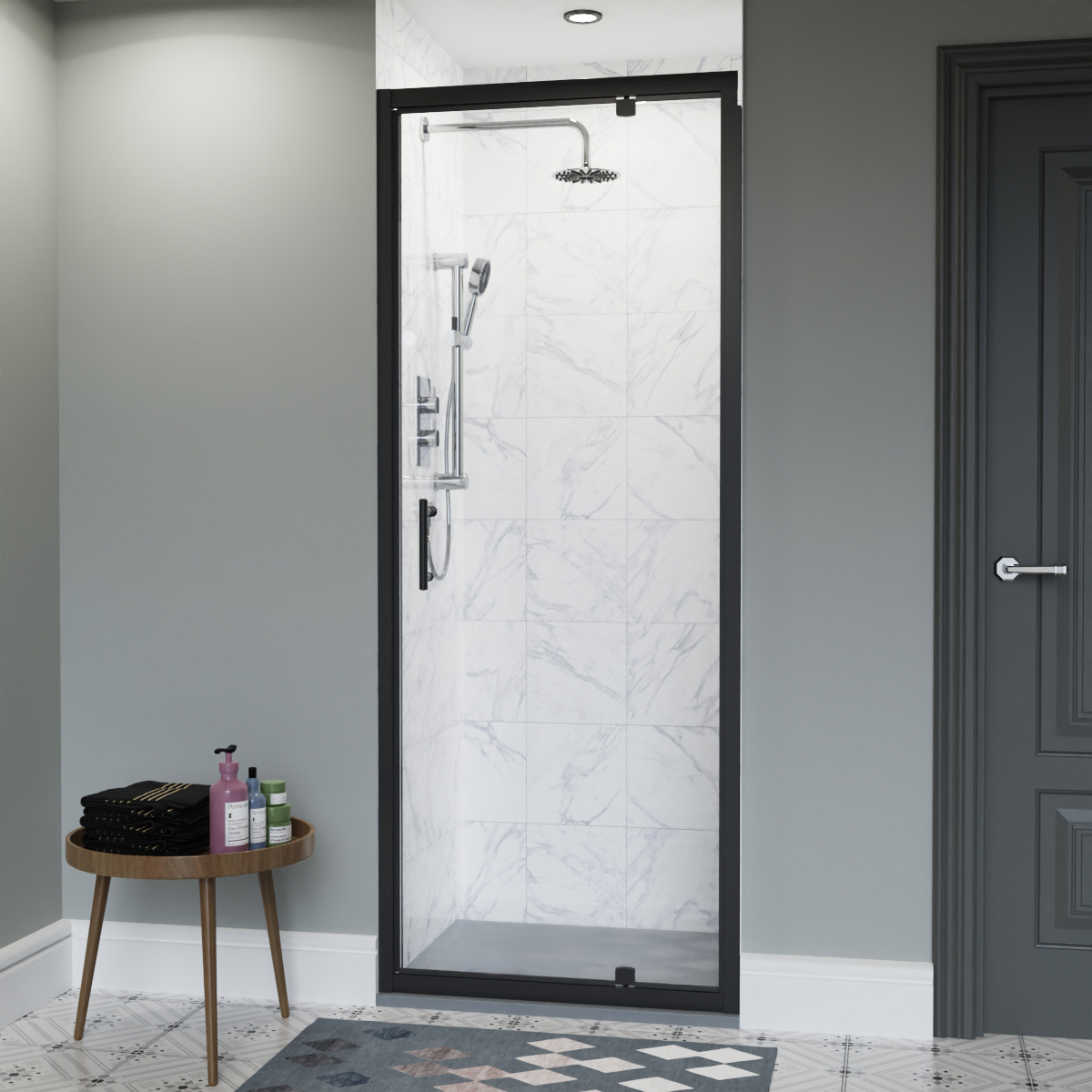 Nuie Rene Black Pivot Shower Enclosure Door 6mm Tempered Glass Modern Bathroom