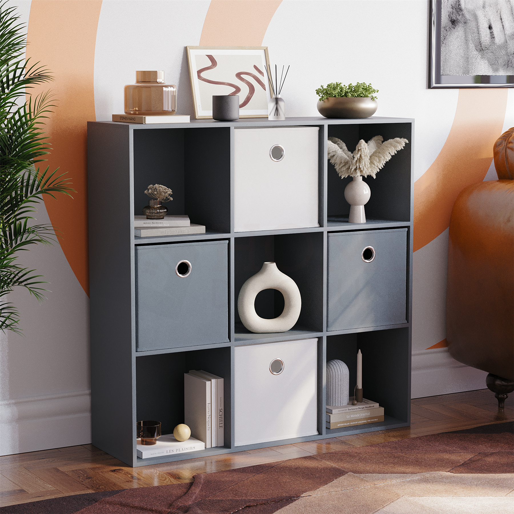 4 6 9 Cube Bookcase Storage Unit Wooden Shelving Display Shelves Fabric Baskets