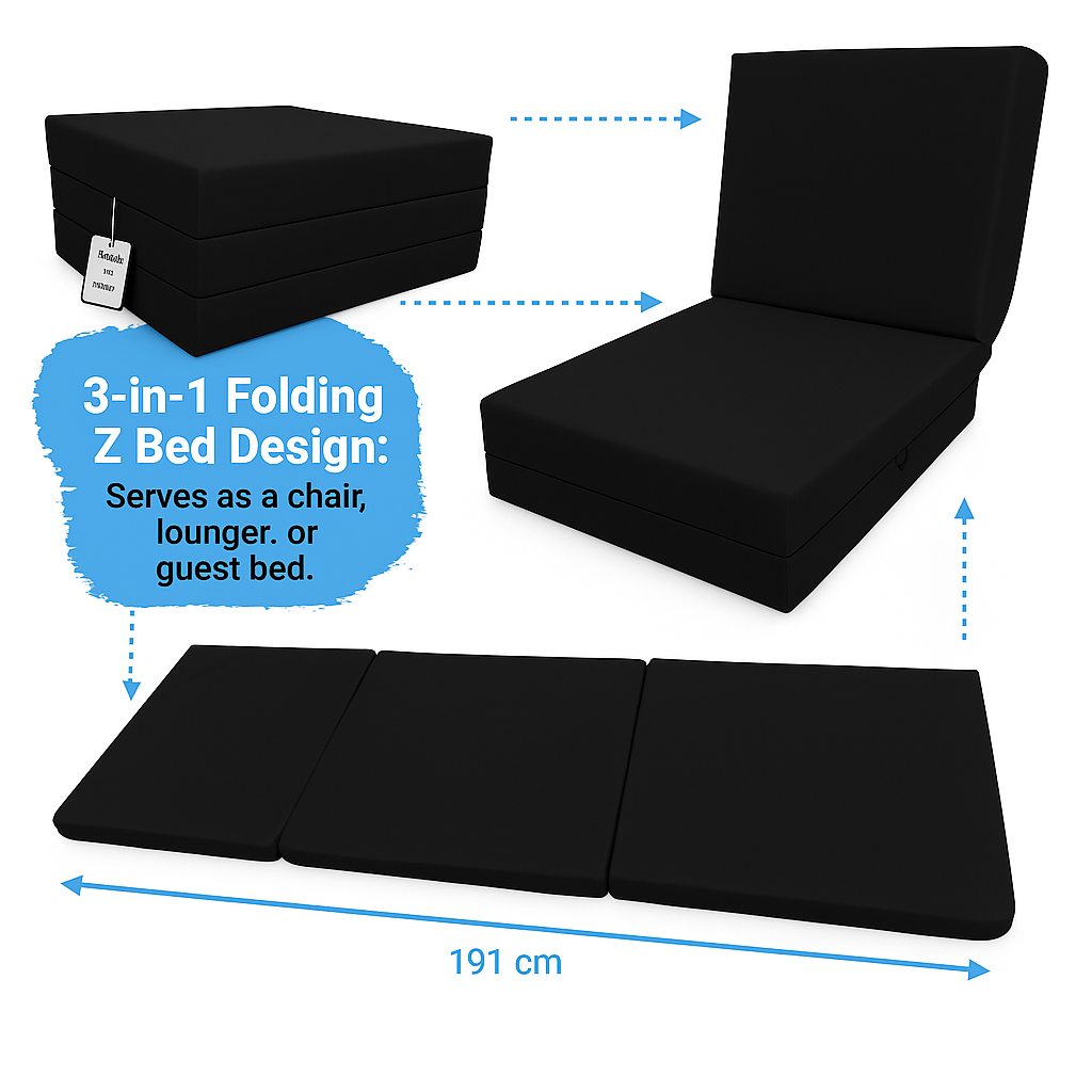 Z Bed Trifold Single Size Fold Out Chair bed Chair Folding Guest Sofa Mattress | ✔ Check At Store | £41.99 |