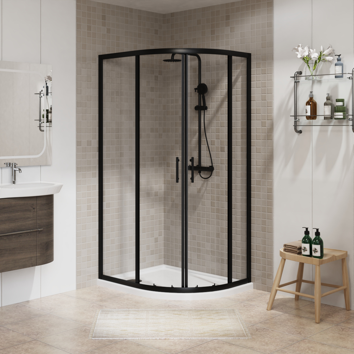 NES HOME Saturn Black Quadrant 800mm Corner Shower Enclosure & Tray