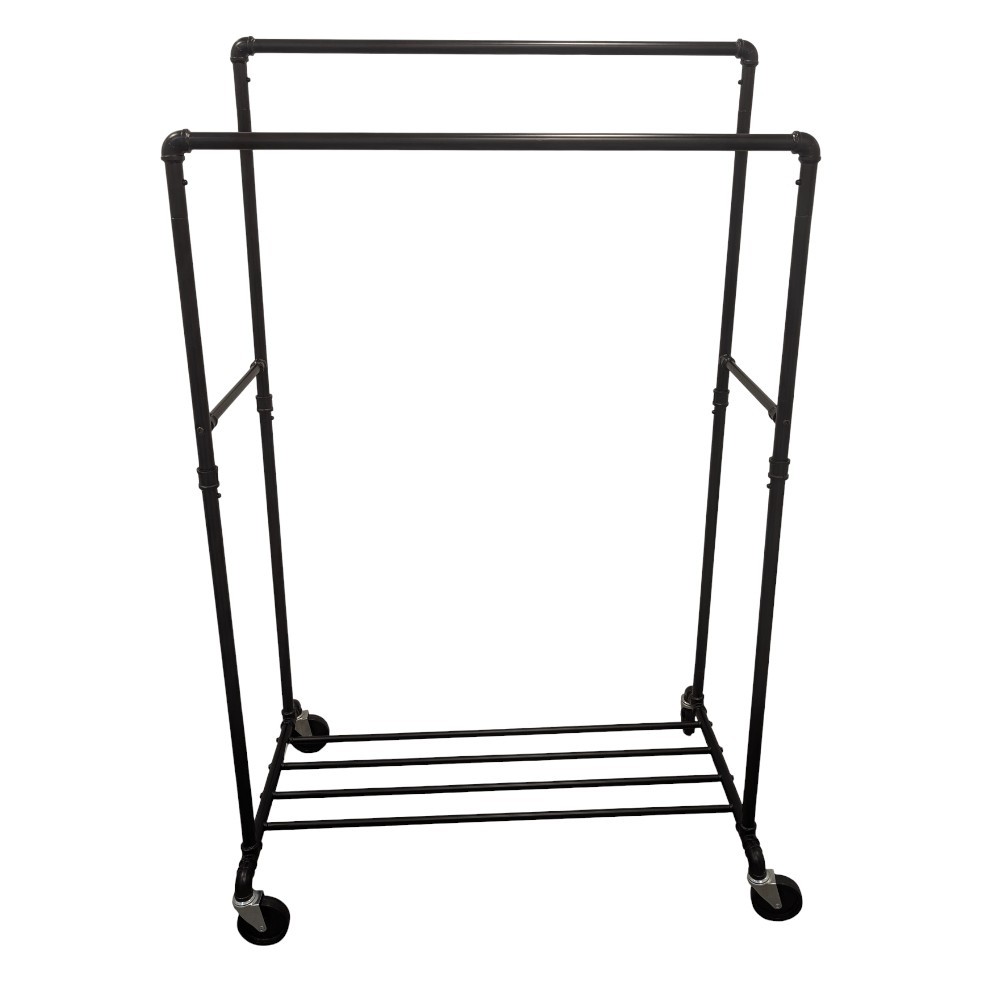 This black SONGMICS clothes rack is a robust and heavy-duty solution for organizing your wardrobe. The double-rail design provides ample space for hanging clothes, while the bottom shelf is perfect for shoes, bags, or storage boxes.