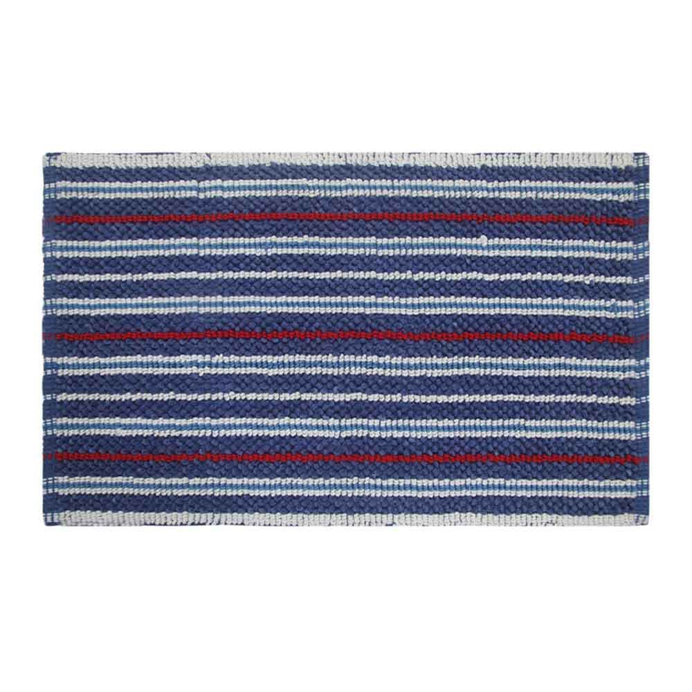Blue Red Striped Cotton Chenille Bath Mat Non Slip Machine Washable Bath Rug