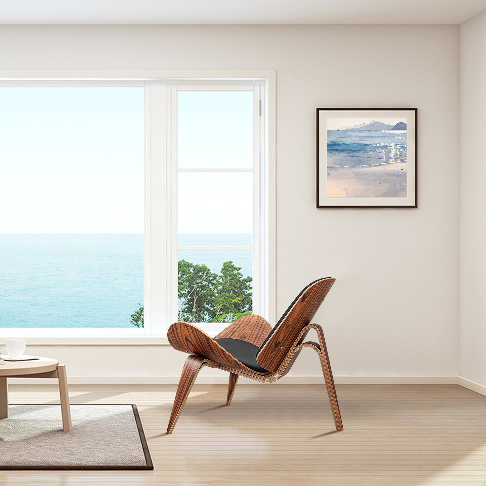 Though it only has three legs, it is incredibly stable, with the legs being constructed out of a continuous piece of bent plywood. The top-grain leather upholstery makes it even more luxurious. The beautiful walnut veneer and enchanting curves make this chair beautiful to look at from all sides and angles.