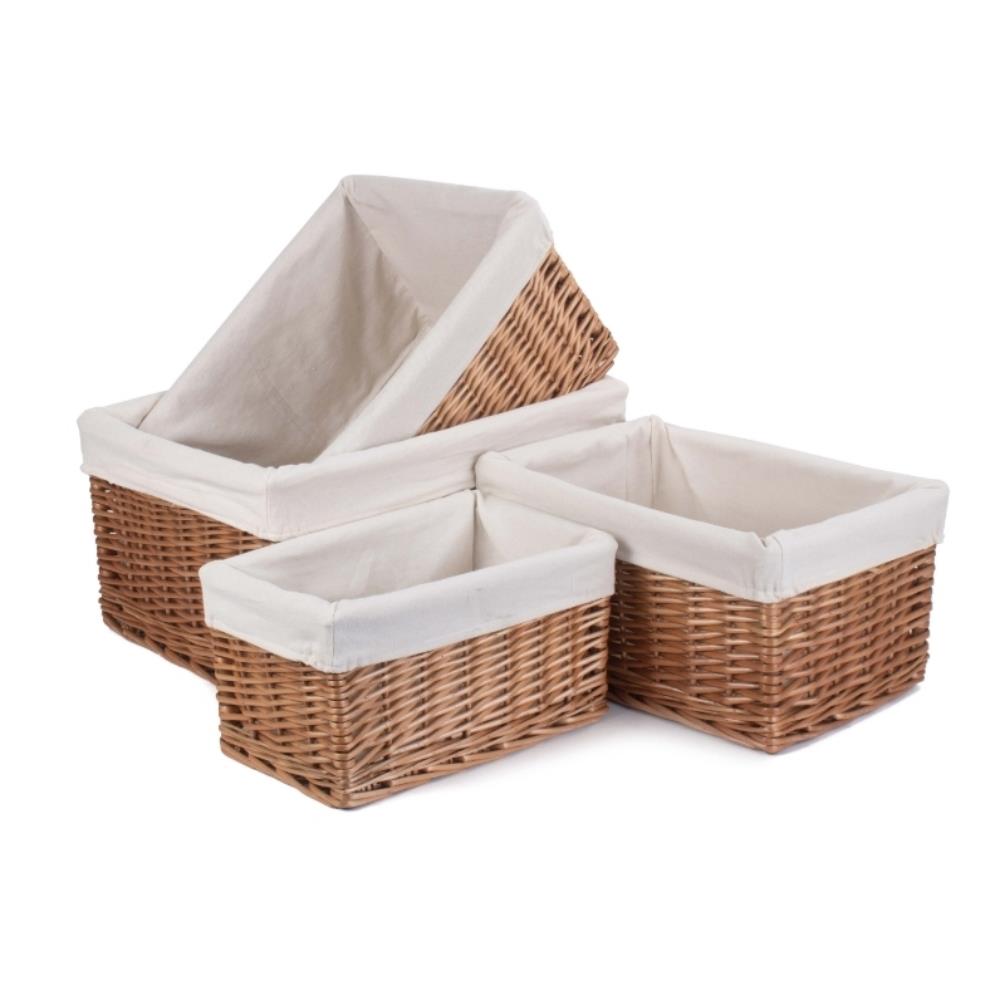 Double Steamed Grey Cotton Lined Willow Storage Baskets