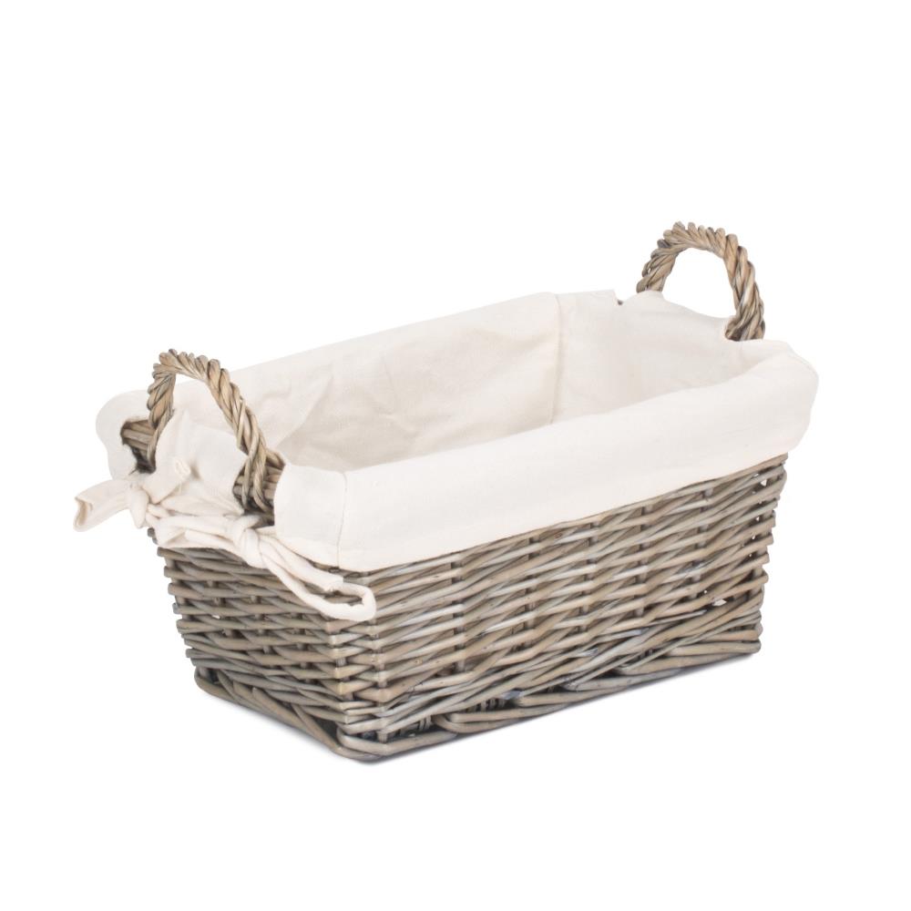 Medium Wicker Antique Wash Finish Handled Grey Cotton Lined Storage Basket