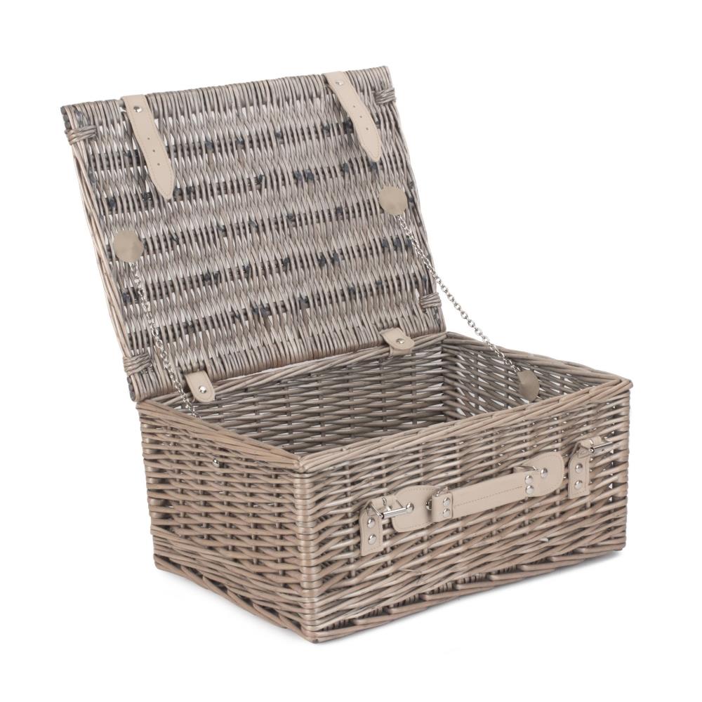 Look no further than our wicker antique wash 35cm empty hamper basket! This charming empty wicker picnic basket is the perfect accessory for any outdoor gathering or romantic date in the park.