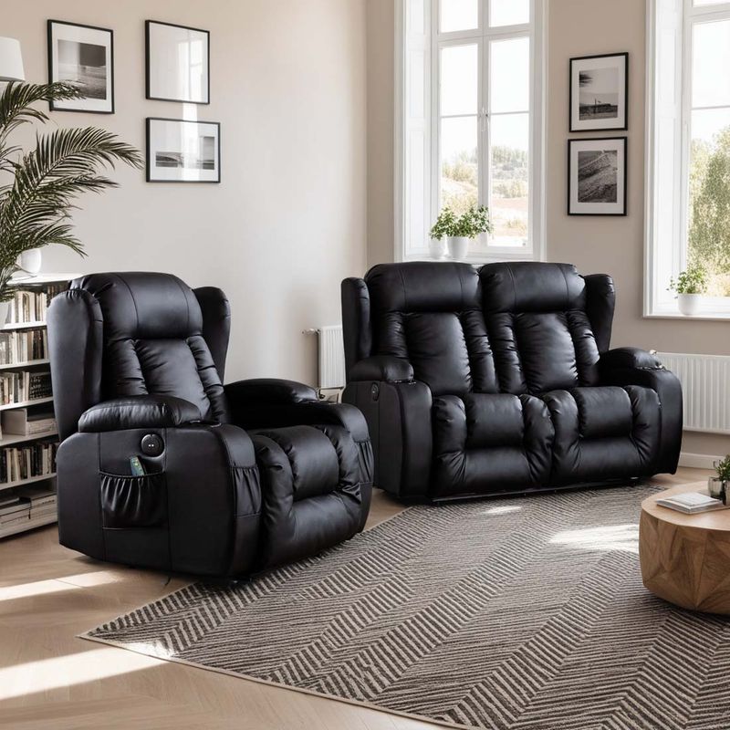 More4Homes Caesar Electric Recliner Bonded Leather 1+2 Seater Sofa Set in Black Black