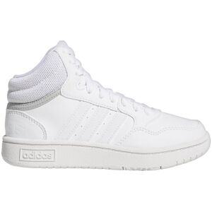 Elevate your child's basketball game with these Adidas Hoops Mid 3.0 K Cloud shoes. The shoes feature a lace-up closure and mid-top shoe shaft style, making them comfortable and secure for school or basketball activities. The rubber outsole and fabric insole provide excellent traction and support, while the synthetic leather upper material adds durability. These shoes are perfect for summer, fall, or spring and come in a stylish Cloud White/Victory Blue/Better Scarlet color combination. The Adidas logo accents and school theme make these shoes a great addition to any child's activewear collection. Get your child a pair of these athletic shoes today and watch them soar on the basketball court or during school activities.