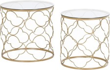 Homcom - Nesting Tables Set of 2, Side End Table with Glass Top, Gold Tone