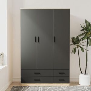 .Enhance your bedroom with the elegant and versatile Tripoli 3-Door 4-Drawer Wardrobe. This stunning piece of furniture offers ample storage space while adding a touch of sophistication to any room. With the unique "mix and match" approach, you can customize your wardrobe by choosing any colour carcass with any colour drawers. The wardrobe features three doors – a double door on the left and a single door on the right, providing easy access to your clothes and accessories. At the base, it includes four drawers – two large drawers under the double doors and two smaller drawers under the single door. The larger drawers offer generous space for bulkier items, while the smaller drawers are perfect for organizing smaller clothing pieces and accessories. Inside, the wardrobe is equipped with a sturdy wooden hanging rail, ideal for hanging dresses, suits, and other clothing. Behind the three doors is a flat shelf, offering additional open storage above the drawers for items like hats, bags, and folded clothes. Overall Size: Height: 180 cm Width: 108 cm Depth: 46 cm Larger Drawer Dimensions: Height: 11.5 cm Width: 66.5 cm Depth: 36.5 cm Smaller Drawer Dimensions: Height: 11.5 cm Width: 31.5 cm Depth: 36.5 cm Choose from a variety of stunning colours to match your decor, and mix and match the carcass and drawer colours for a personalized look: Ash Grey Black Cool Grey Oak White The Tripoli Wardrobe comes with easy-to-follow assembly instructions, ensuring a hassle-free setup. Upgrade your storage solution with the Tripoli 3-Door 4-Drawer Wardrobe, a perfect blend of functionality and style, tailored to your unique taste. 17 Stories Finish: White/Oak