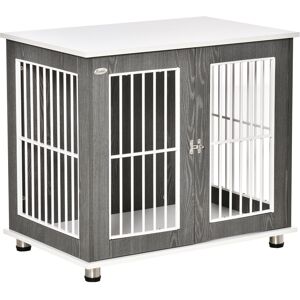 A PawHut dog crate table where everyone benefits – pets have a safe and comfortable space to relax, whilst you have a stylish table top to display your favourite pieces. Pets will enter through the double doors, where they'll lay on the soft, washable cushion, whilst the spaced bars let air flow through to keep them cool – the lockable doors ensure they're secure. A wooden structure, this durable cage has four feet, so moisture and damp doesn't seep through a piece for all to enjoy. Specifications: - Colour: Natural finish, Cream White - Material: Pine wood, plush (100% polyester), sprayed cotton (100% polypropylene) - Dimensions: 72H x 82.5W x 57Dcm. Inside cage: 60H x 76W x 51Dcm. Single door: 53.5H x 35.5Wcm. Cushion: 76.5L x 52W x 5Dcm. Leg: 7L x 5W x 5Dcm. Bar spacing: 3.5cm - Item label: D02-129V71ND Features: ● Cushion included for added comfort ● Wooden structure for stability ● Can be used as a crate and side table ● Spacious table top for displaying pieces, adding a