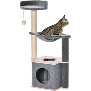 Satisfy your cat's natural instincts in a safe way with this cat tree from PawHut! This multi-activity center features natural sisal covered scratching posts, teasing ball toy, roomy condos and perches. Cat scratcher benefit both pet and owners by providing someplace to relieve cats’ desire to claw and to climb and saving your carpets and household furniture from damage. Rest, play, exercise, your cats can spend all day on it. Keep your kitten happy and your home safe with this deluxe climbable cat tree exploration center!Features: Made of durable bamboo fiber board, sisal and 400g/㎡ plush in strong construction Features 3 funny toys on cat tree for your cat’s entertainment Sisal posts satisfy your cats’ nature of clawing, and protect your furniture from scratching Elegant beige color tones go well easily with your home’s existing décor With more than one level and ladders to fill your cat's instinct to climb Your cat can lie down, relax or sleep on it Assembly instruction and tool included