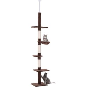 Feature: 225-255cm adjustable height, maximising space Includes two cat hammocks and a cat house for comfort Soft velvet covering encourages relaxation and sleep Ceiling-extending posts and stable base prevent tipping Posts designed for scratching and grooming, deterring them from using furniture Includes playful accessories for entertainment Suitable for up to two cats under 5kg each Assembly required Specification: Colour: Green and brown Material: Particle board, polyester and sisal Overall dimensions: 225-255H x 60W x 48Dcm Cat house: 31H x Φ33.5cm Platform: 48W x 48Dcm, 24W x 48Dcm Scratching post: Φ6.5cm Post with grooming brush: 15H x Φ10cm Hammock: 10H x Φ35cm, 13H x 46W x 19Dcm Base: 60L x 48Wcm Maximum load: 10kg Item label: D30-855V00GN 1 x Floor-to-ceiling cat tree 1 x Manual