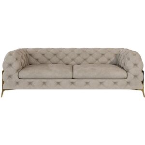 The Chesterfield sofa with golden metal leegs is an elegant addition to your living room. Crafted from high-quality velvet fabric, this sofa offers not only a touch of luxury but also high comfort. The seat cushions are filled with premium foam padding and springs, providing a plush and supportive sitting experience. The classic Chesterfield design with button detailing on the front and back gives this sofa a timeless elegance. The golden metal leegs in a shiny gold finish not only offer stability but also add a touch of glamour. These leegs elegantly elevate the sofa from the floor, giving it a floating appearance in the room. The high-quality velvet fabric is not only pleasant to touch but also durable and resistant to stains and damage. This sofa accommodates two people comfortably and is perfect for cozy evenings or conversations in smaller gatherings. A focal point in any living room. Etta Avenue Upholstery Colour: Beige, Size: 73cm H x 225cm W x 100cm D, Seating Capacity: 3