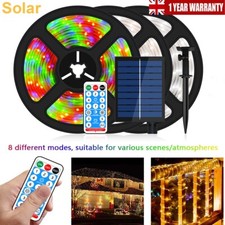 General description These LED Solar Lights are designed for versatile use, perfect for decorating your terrace, garden, patio, Christmas tree, and more. With 100 LEDs spread over a length of 10 meters, they add a warm and festive atmosphere to any outdoor space. Technical specifications Length: 10 meters Number of LEDs: 100 Waterproof rating: IP67 Operating time: More than 8 hours on a full charge Installation No wiring required; simply connect the solar panels to the ground. Install in a location with direct sunlight for optimal performance. Usage 8 operating modes available to adjust the light according to the scene. Ideal for indoor and outdoor lighting, including gardens, patios, fences, gates, courtyards, weddings, parties, and Christmas trees.