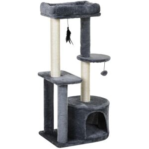 Ensure your cat is happy and healthy with this PAWHUT activity tree. Using particle board for the structure so it is stable enough for them to climb and jump, it is covered in soft and plush material for comfort and safety. The tree is composed of a house, a top perch and two platforms, giving your pet plenty of space to relax and play about. It's easy to assemble too, meaning your cat will have a new favourite spot ready in no time at all.Features:Features one small house, a top perch, two platforms, a ball ball and a play featherRaised edges protect your pet from falling downSisal scratching posts for your cat's claws, helps deter them from using furnitureCovered in soft plush fabric for a safe and comfortable surfaceParticle board frame ensures a solid and upright structureEasy to assemble