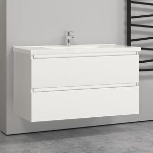 1000mm Elegant Modern Bathroom Wall Hung Vanity Unit with Sink 1 Tap Hole,2 Drawers Soft Closing Matte Bathroom Furniture,Pre-assembled Product features: Wall Mounted vanity unit Includes ceramic basin Contemporary minimalism design without handles ----Our bathroom furniture puts a new spin on contemporary minimalism with its stunningly simple door handles. An easy to access groove along the top of the doors means you won't need to have handles protruding, keeping everything looking stylish, neat and tidy. Soft-close Drawers ----They're easy to open and when pushed they close smoothly shut with the slow close mechanism providing a quiet and fluid movement until closed. Spacious storage space for all your essentials ----this vanity units have just that with enough space to safely store any bathroom essentials you need, keeping everything nice and tidy for a clutter-free bathroom. flat-pack Specification: Dimensions: H 520 x W 990 x D 445 mm Material: MDF board + Ceramic Tap Hole: 35mm
