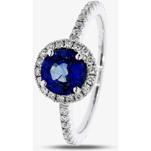 The opulent 0.30ct oval diamond occupying the centrepiece of this ring is supplemented by forty eight smaller diamonds, set into the twin halos and into the mount. A further sixteen shimmering graduated stones are then set into the tapered shoulders.