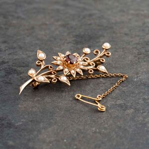 Pre-Owned Vintage 9ct Yellow Gold Garnet & Seed Pearls Flower Brooch 41131121 | ✔ Check At Store | £395.00 |