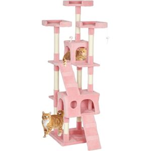 Let your pet be themselves with the PawHut cat tree! This safe space is great for playing, scratching, climbing and relaxing. As they explore the multiple levels, hanging toys will keep their attention engaged. The scratching board is suitable for satisfying their claws, protecting your furniture. When it's time to rest, they'll choose from three plush-covered perches and two cosy cat houses. Create a fun and comfortable haven for your cat, allowing them to thrive. Specifications: ● Material: Particle board and plush cloth ● Colour: Grey ● Dimensions: 173H x 49L x 49Wcm ● First cat box: 24H x 44L x 26.5Wcm ● Second cat box: 24H x 26L x 26Wcm ● Bottom board: 48.5L x 48.5Wcm ● Packaging dimensions: 25H x 50L x 50Wcm ● Weight capacity: 10kg ● Gross weight: 13.2kg ● Custom label: D30-050GY Features: ● Featuring multiple levels, this tall cat tree includes three top perches, two spacious cat houses, two ladders and three dangling toys ● Made of solid particle board for stability, wrapped