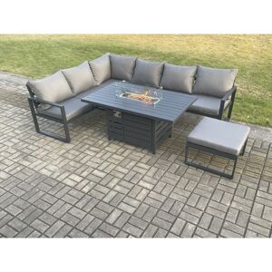 This deluxe aluminum gas fire pit sofa dining set is a great addition to your patio or garden, made of high quality Alloy aluminum and durable powder coating for sturdiness and structural durability. Important notice: Please Do not cover the igniter with lava .we strongly recommend using 5 kg gas tank. Before using the fire pit ,please check it carefully if there is any leakage at the joint place or the hose . if the gas bottle is not fixed correctly or the hose has some leakage it may cause danger . Set Dimensions: 2 x 3 Seater Sofa: 166W x 73D x 78H cm 1 x Side coffee table 68L x 68W x 59H cm 1 x Big footstool 60L x 60W x 35H cm 1 x PC dining table with fire pit: 140L x 80W x 70H cm (Aluminum table top Without glass) Dark grey powder coated with dark grey fabric .Color may vary little due to light or monitor .we are unable to return the item due to color problem .please contact before purchase if you have requirement on color saturation.the product is delivered on pallet,to kerbside only.