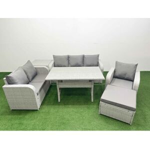 This deluxe PE rattan sofa set is a great addition to patio or garden, made of high quality PE rattan and durable galvanized steel. Pls kindly leave your mobile number at checkout for not delaying your shipment . Set dimensions: • 1 x Reclining chairs Size: 74W x 69D x 79H cm • 1 x Love Sofa Size: 124W x 67D x 79H cm • 1 x 3 Seater Sofa Size: 177W x 67D x 79H cm •1 x Big footstool :65L x 65W x 34H cm •2 x Side table :65L x 65W x 66H cm • 1 x Table Size: 105L x 50W x 48H • Sofa Weight Capacity: 250kg • Table Weight Capacity: 80kg Light grey rattan with dark grey fabric .Color may vary due to light or monitor .we are unable to return the item due to this problem .Please contact us before purchase if you have requirements on color saturation . The 2 armchairs are adjustable, you can adjust the inclination of the chair back from 90°-130° through the button . Items Comes Flat Packed And Easy to Assemble,Sturdy Galvanized Steel Tube Metal Frames With Powder Coating To Prevent The Rust,