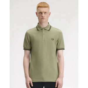 Men's Fred Perry Mens Twin Tipped Signature Polo Shirt Pre A/W 25 - Olive Mint/Night Green Y64 - Tan - Size: 38