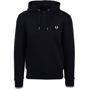 Fred Perry Tipped Hooded Sweatshirt Navy A classic navy hoodie with a twist, featuring pink tipped cuffs and logo. This is a great addition to your hoodie rotation and makes for a great layering piece. 79% Cotton 21% Polyester Drawstring hoodFront pocketTipped sleeve detail Long sleeveClassic Laurel Wreath brandingStyle - M2643