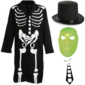 ADULTS FANCY SKELETON COSTUME: Rattle those bones about at your next fancy dress party in style with our Adults Fancy Skeleton Costume and add some style to any Halloween Party you attend! COSTUME DETAILS: Your Adults Fancy Skeleton Costume includes a Black Top Hat, a Glow in the Dark Plastic Skeleton Mask with a comfortable elastic strap, a long Black Jacket with a White Skeleton Print on the front, and a Black Tie with a Skeleton Print Bone design down the front! AVAILABLE IN MULTIPLE SIZES: Your Adults Fancy Skeleton Costume is available in multiple sizes, from Small to XX-Large: Small - Chest: 36/38" (91/97cm), Length: 45" (114cm) Medium - Chest: 42/44” (107/112cm), Length: 46” (117cm) Large - Chest: 46/48” (117/122cm), Length: 46.5” (118cm) X-Large - Chest: 49/52” (125/132cm), Length: 47” (120cm) XX-Large - Chest: 53/56” (135/142cm), Length: 47” (120cm) ONE SIZE FITS MOST: The Top Hat included in this Skeleton Costume is a great size for most Adults to wear comfortably with a head size measuring up to 58cm (23") PERFECT FOR HALLOWEEN EVENTS: Whether you’re making a flashy entrance at your next Halloween Party, or for any other spooky event, our Adults Fancy Skeleton Costume is perfect for you!