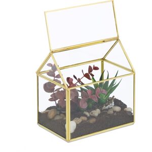 Create your own indoor garden with this decorative, house-shaped plant terrarium. Perfect for moss, succulents, or air plants, this mini greenhouse creates an ideal microclimate to help your plants thrive.The terrarium's compact design makes it easy to place on a shelf, windowsill, or table. use this glass terrarium to bring a fresh pop of greenery to any room in your home. Plant Terrarium in Detail - Overall dimensions H x W x D: approx. 21 x 23 x 14 cm - Internal dimensions H x W x D: approx. 20 x 22 x 13 cm - Window opening dimensions W x D: approx. 10 x 11 cm - Material: Glass, copper - Weight: approx. 1.1 kg - Available in various colours Mini Indoor Greenhouse Made of Glass - For stylish greenery with small plants like moss, succulents, or air plants - House shape as a decorative feature for modern and traditional interiors - Creates its own microclimate to support plant growth - Suitable for use on windowsills, desks, or shelves - Easy maintenance due to low watering needs