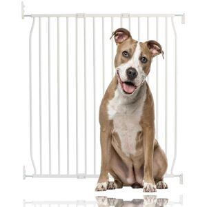 The Eco gate comes as two panels with a simple central connector which fits standard widths of 70 - 80cm. A range of extensions are available which simply slot between the main panels to fit any width up to 140cm. By removing the traditional overlapping system of traditional screw fit pet gates, the whole installation process has been simplified to five easy to follow steps. The Eco gate has a simple manual opening and closing system. The push to release button is activated with a thumb, allowing the user to lift the gate frame out of the cradle with ease. Once through the gate, simply slot the fittings back into the cradle. Screw fit gates are recommended for use at the top of a flight of stairs as they do not have a trip bar, unlike pressure fit gates. However, it is equally important that a gate can be restricted to open ONLY away from the stairs to avoid any potential dangers of falls. The Eco gate has a one-way restrictor to resolve this issue, but also has the option to enable