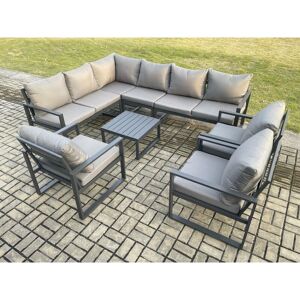 This 7 Pieces aluminium Outdoor garden furniture set can be used both indoors and outdoors,with high quality aluminium Frame construction for sturdiness and long lasting. it can also be placed on the patio or balcony,The design of this patio lounge sofa set is a perfect blend of country chic and modern minimalism, adding an elegant touch to your house. Set Dimensions: • 1 x Left Sofa with single armrest: 125W x 70D x 78H cm • 1 x Right Sofa with single armrest: 125W x 70D x 78H cm • 1 x Corner Sofa:70L x 70W x 78H cm • 1 x Armless Sofa Size: 60L x 70W x 78H CM • 2 x Chair Size: 74L x 70W x 78H cm • 1 x Square Coffee table : 60L x 60W x 35H cm Dark grey powder coated with dark grey fabric .Color may vary little due to light or monitor .we are unable to return the item due to color problem .please contact us before purchase if you have requirement on color saturation. Items Comes Flat Pack And Easy Assemble, Alloy Aluminium Frame With Powder Coating To Prevent The Rust This Set Was