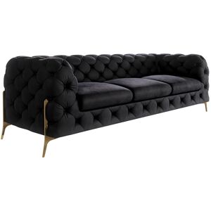 The Chesterfield sofa set consisting of a 3-seater, a 2-seater, and a chair with golden metal leegs is the perfect choice for an elegant living room. Crafted from high-quality velvet fabric, these pieces of furniture offer not only a touch of luxury but also high comfort. The seat cushions are filled with premium foam padding and springs, providing a plush and supportive sitting experience. The classic Chesterfield design with button detailing on the front and back gives these pieces a timeless elegance. The golden metal leegs in a shiny gold finish not only provide stability but also add a touch of glamour to the set. This Chesterfield sofa set accommodates up to six people and is ideal for families or entertaining in larger gatherings. An ensemble that combines comfort and style. Etta Avenue Upholstery Colour: Navy Blue
