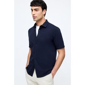 French Connection Mens Navy Cotton Stretch Terry-Style Short Sleeve Button Polo Shirt - Size Large | ✔ Check At Store | £36.00 |