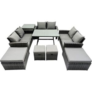 • This PE rattan outdoor furniture set is a great addition to patio or garden, made of high quality PE rattan and durable galvanized steel construction for sturdiness and long lasting.Durability,and this garden furniture set can be put outdoors all year round. • Set Dimensions: • 3 x 3 Seater sofa with double armrest: 177W x 65D x 66H cm • 1 x Dining table size: 110L x 70W x 70H cm • 2 x Coffee table: 65L x 65W x 34H cm • 1 x Big footstool :65L x 65W x 34H cm • Dark grey mixed rattan with dark grey fabric .Color may vary due to light or monitor .we are unable to return the item due to this problem .Please consult us before purchase if you have requirements on color saturation • Items Comes flat pack ,self assembled is necessary .Sturdy Galvanized Steel Tube Metal Frames With Powder Coating To Prevent The Rust. • Low Maintenance ,Removable Cushion Cover And Easy Move to Different Place.Pls Keep the Cushion Indoor Or put on With Rain Cover When Not In Use . put on Furniture With Rain