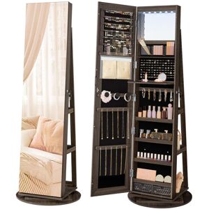 Keep your jewellery and perfumes discreetly and elegantly stored away with this stylish mirror jewellery cabinet with LED lights! Durable material: The engineered wood is of exceptional quality with smooth surface and also features strength, stability and resistance to moisture. Made of engineered wood, the jewellery cabinet is easy to clean with a damp cloth. Ample storage space: The storage mirror offers plenty of hooks, hangers and shelves to keep your jewellery neatly organised and within reach.Practical mirror: With a full-length mirror, this jewellery organiser is great for getting ready and applying make-up.Considerate protection: The jewellery storage has a lockable door and comes with 2 keys to ensure the safety of your items. Also, the soft fabric cover inside not only adds elegance but also protects your beloved jewellery from scratches.Bright LED lights: The mirror is surrounded by LED lights that are controlled by on/off switch, which not only gives you a movie star feeling but also adds an extra touch to your room d??cor.Space-saving design: Hang the mirror jewellery box over the door with the included hooks or mount it on the wall to save floor space. Good to know:Screws for wall mounting are included. Latitude Run Colour: Black