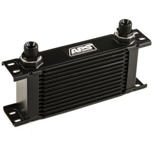 Designed to cool the engine oil by using air flow through the cooling fins these oil coolers are suitable for fast road or competition cars whose engines are subjected to higher RPM and increased power levels. When oil exceeds its working temperature it can become too thin to protect effectively. For this reason an oil cooler is an important addition to protect your engine, transmission or differential.Ideal for high performance or competition engines, transmissions and differentials which experience higher oil temperaturesLightweight aluminium pressed plate design with black powder coat finish for corrosion resistanceKit includes male adapters in the selected size (unless 'without fittings' is selected from the options).Helps to protect engines from failure due to oil becoming too thin at high temperaturesUniversal fitting, available with a range of different threaded fittings to suit various applicationsAll coolers are pressure tested to 160 psi so you can be confident of leak free and reliable operationThe APS (Automotive Plumbing Solutions) range of oil coolers are available in various sizes to offer different levels of cooling (the bigger the cooler the better the cooling). Two different widths are available 170mm and 240mm (this dimension refers to the matrix width, not overall width). The height of the cooler is measured in rows (this is the number of oilways including the top and bottom plate, more rows equates to more cooling).The coolers are supplied complete with male adapters unless the option of 'Without fittings' is selected in which case just the cooler with -10 JIC female ports will be supplied. We recommend mounting the coolers using rubber mounting bobbins which provide an ideal mounting solution as they isolate the cooler from vibration reducing the risk of failure through fatigue. Rubber mounting bobbins can be found HERE.